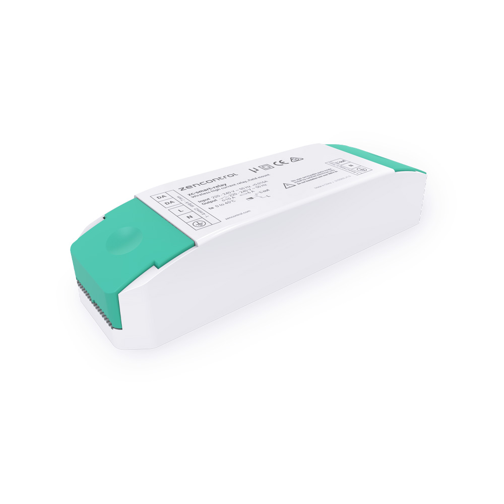 zencontrol zc-Smart Relay er en DALI-2 relæenhed, der kan fungere både som kablet DALI-enhed og som trådløs DALI +. Den er designet til at styre høje belastninger og kan samtidig fungere som en bro mellem kablede og trådløse DALI-systemer, hvilket gør den ideel til fleksible og hybride lysstyringsløsninger. Enheden er fuldt kompatibel med IEC 62386-208 (Device Type 7)
