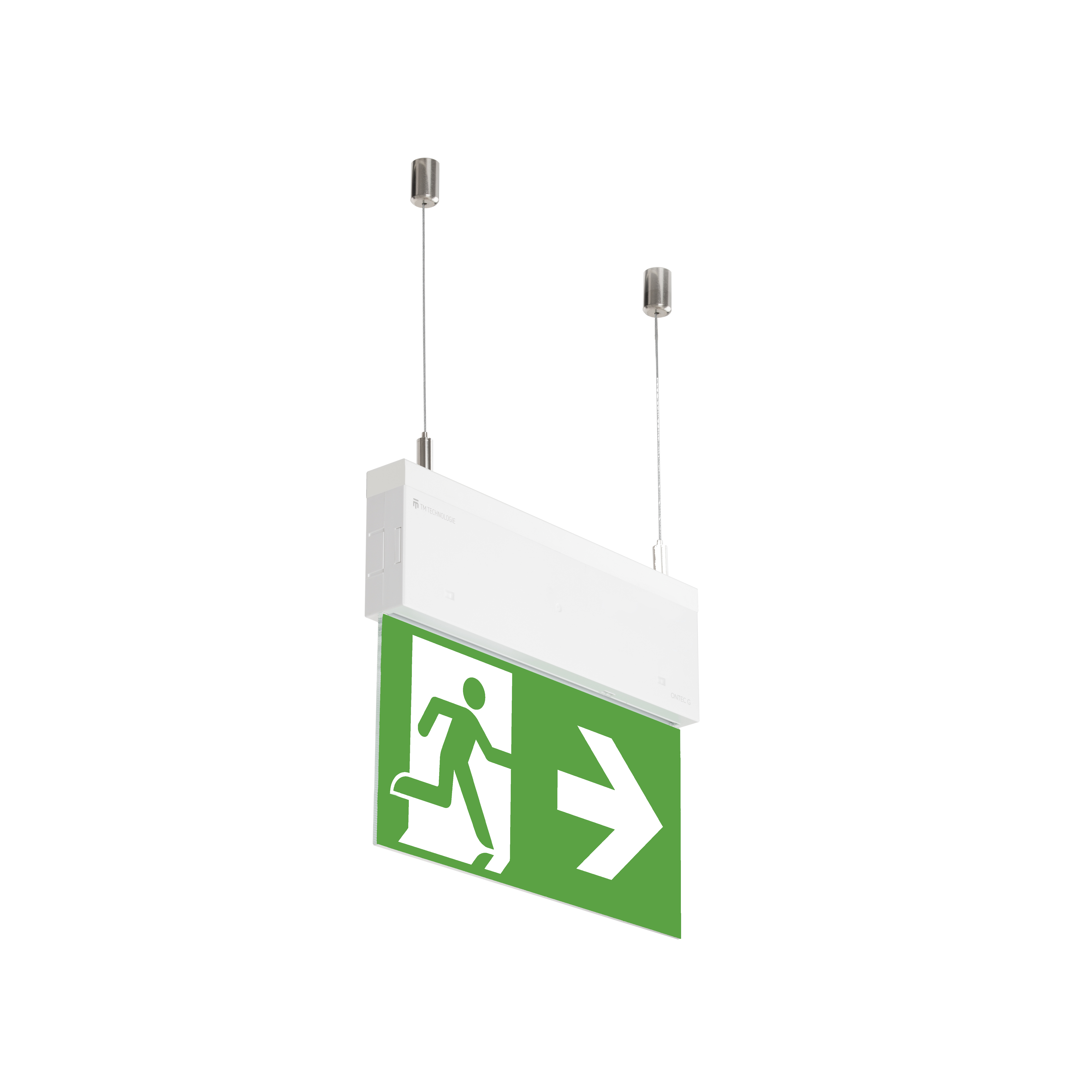Et højt, belyst flugtvejsarmatur udført i polycarbonat.