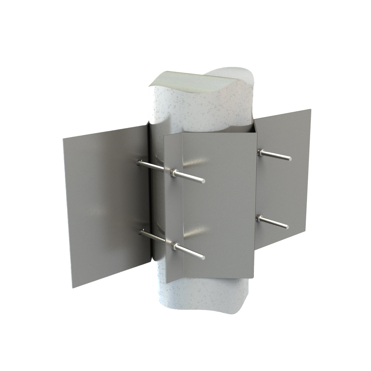 Aluzink stålpladerne er henholdsvis 1,5 og 2,0 mm og bliver samlet med 4 galvaniserede skruer omkring bundrøret på masten.