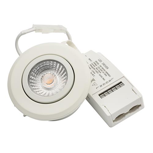 Indbygningspot med integreret LED lyskilde med antiblænd funktion og høj farvegengivelse. Nem montering med fjedre og mulighed for videresløjfning af 3G1,5mm² kabler. Spottens front er med blød afrundet kant og kibbar.