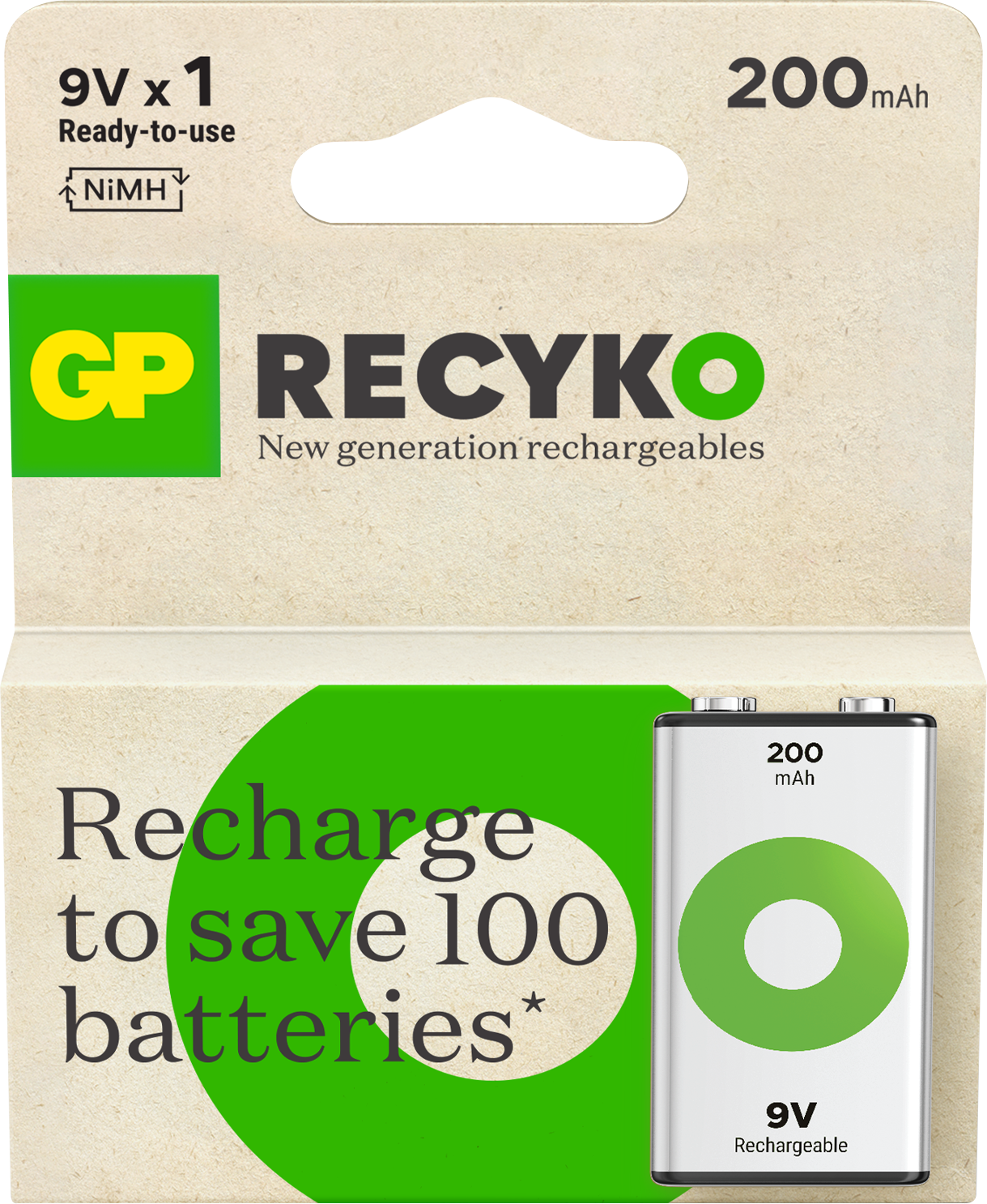 GP Recyko 9V-batteri, 200 mAh, 1-pak