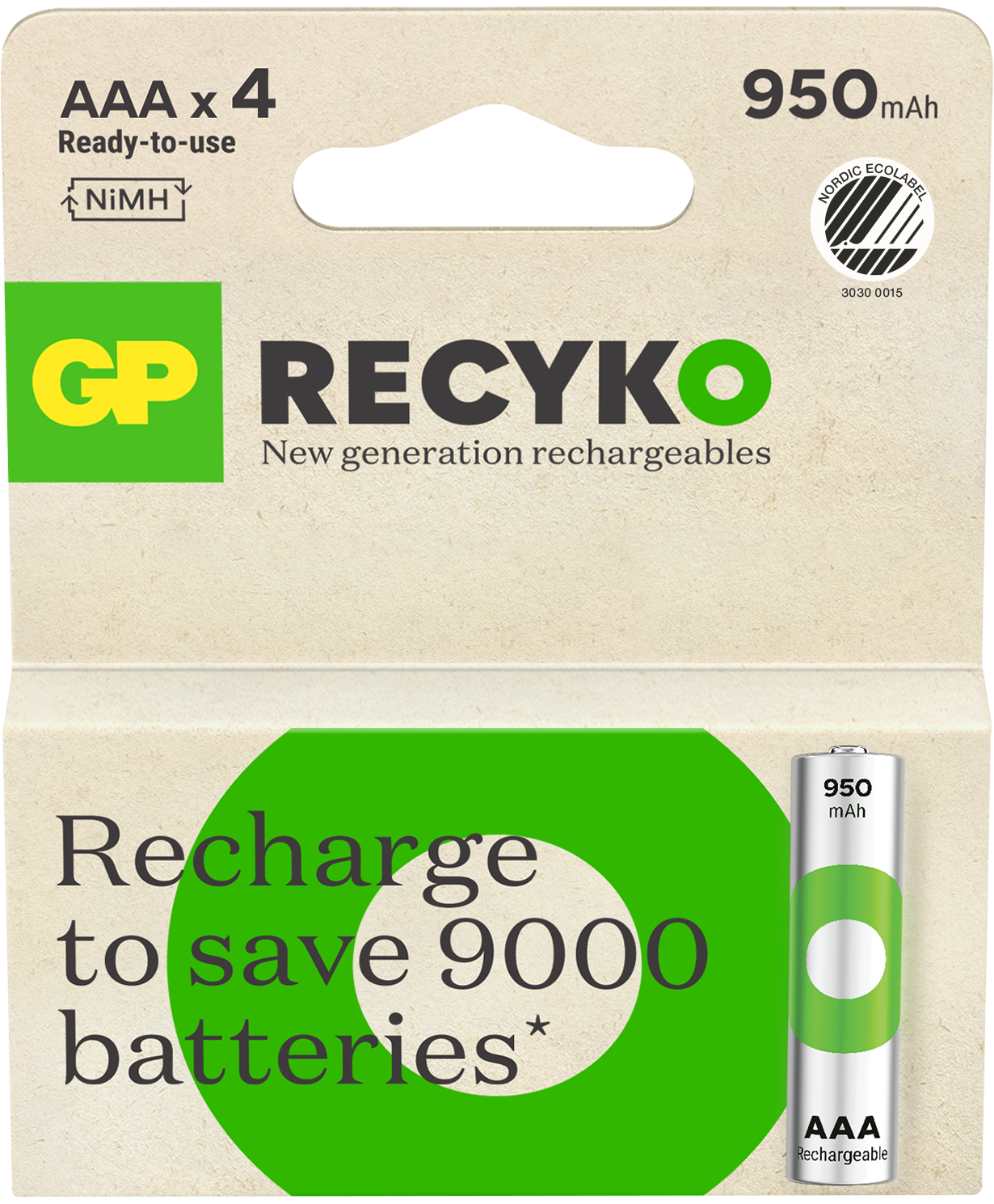 GP Recyko AAA-batteri, 950 mAh, 4-pak