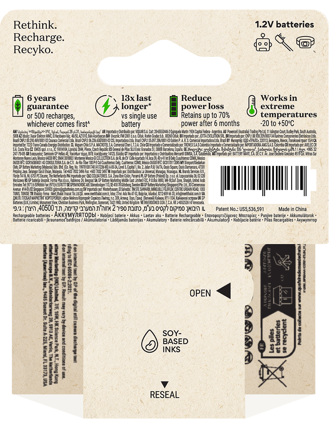 Et genopladeligt NiMH batteri, der er skånsomt for miljøet og din pengepung. Batterierne er forud opladede og har en lav selvafladningshastighed. Batterierne har en livscyklus på op til 300-1000 gange og en pålidelig ydeevne selv i ekstreme miljøer.
