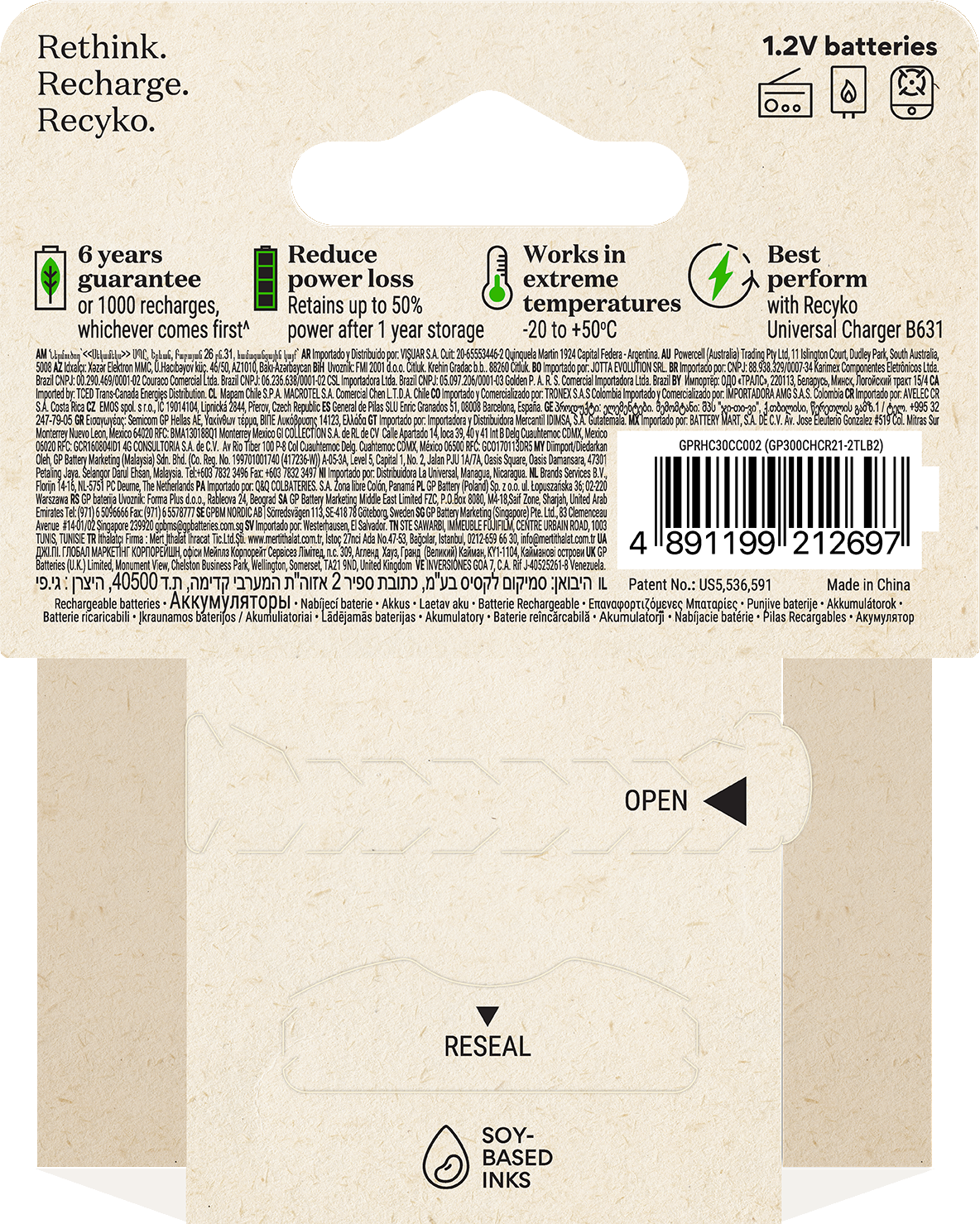 Et genopladeligt NiMH batteri, der er skånsomt for miljøet og din pengepung. Batterierne er forud opladede og har en lav selvafladningshastighed. Batterierne har en livscyklus på op til 300-1000 gange og en pålidelig ydeevne selv i ekstreme miljøer.