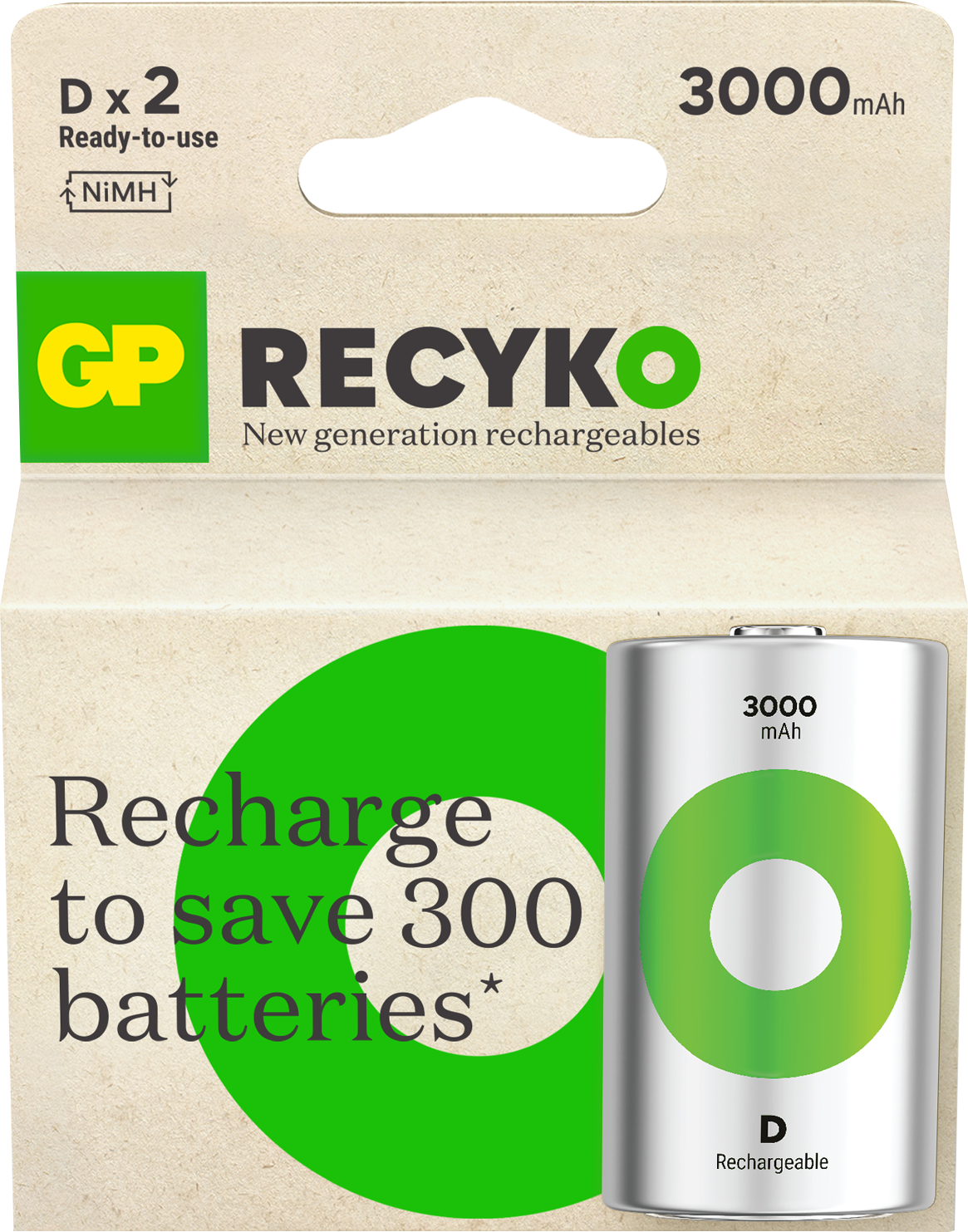 GP Recyko D-batteri 3000 mAh, 2-pak