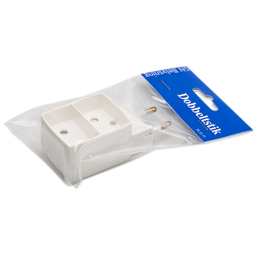 Dobbeltstik 2 flade udtag hvid