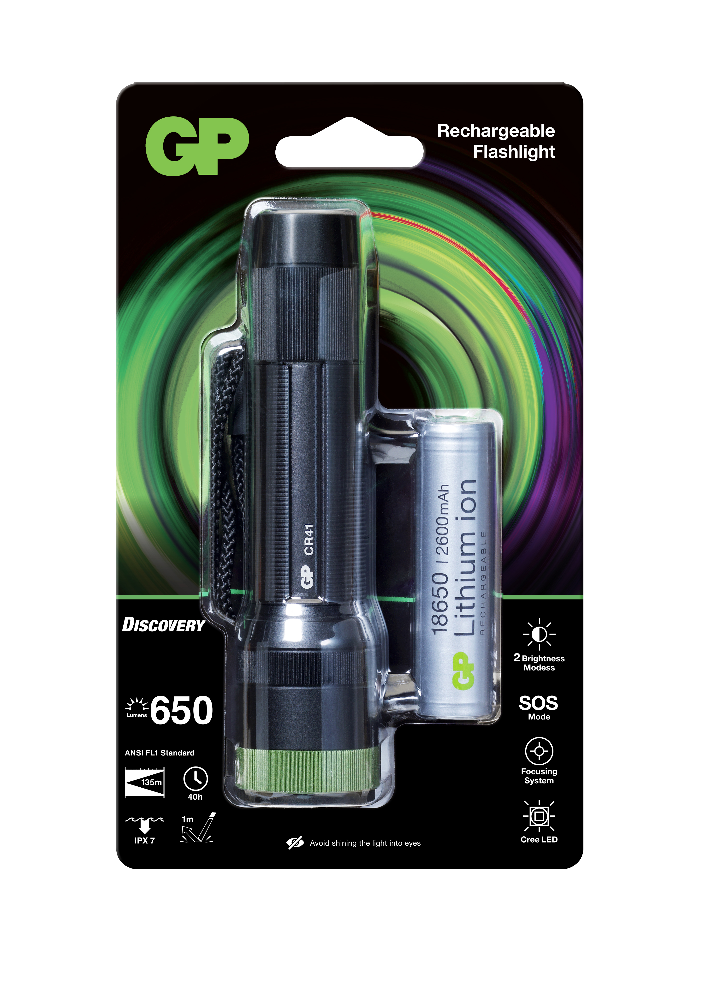 GP lommelygte CR41 LED 600lm 1x18650, inkl.