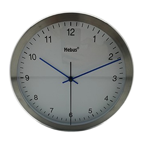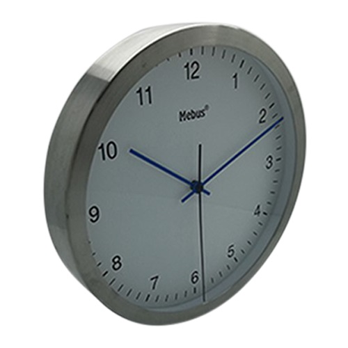 Vægur Ø25 cm stål/hvid/blå m/lydløs bevægelse