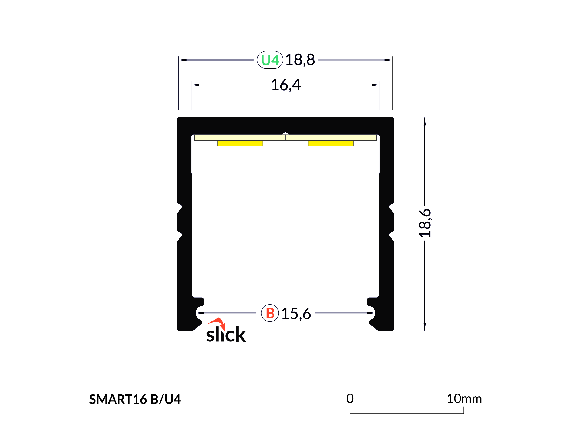DIOFLEX Alu profil SMART16 BC3/U4 2m 18,8x18,6mm