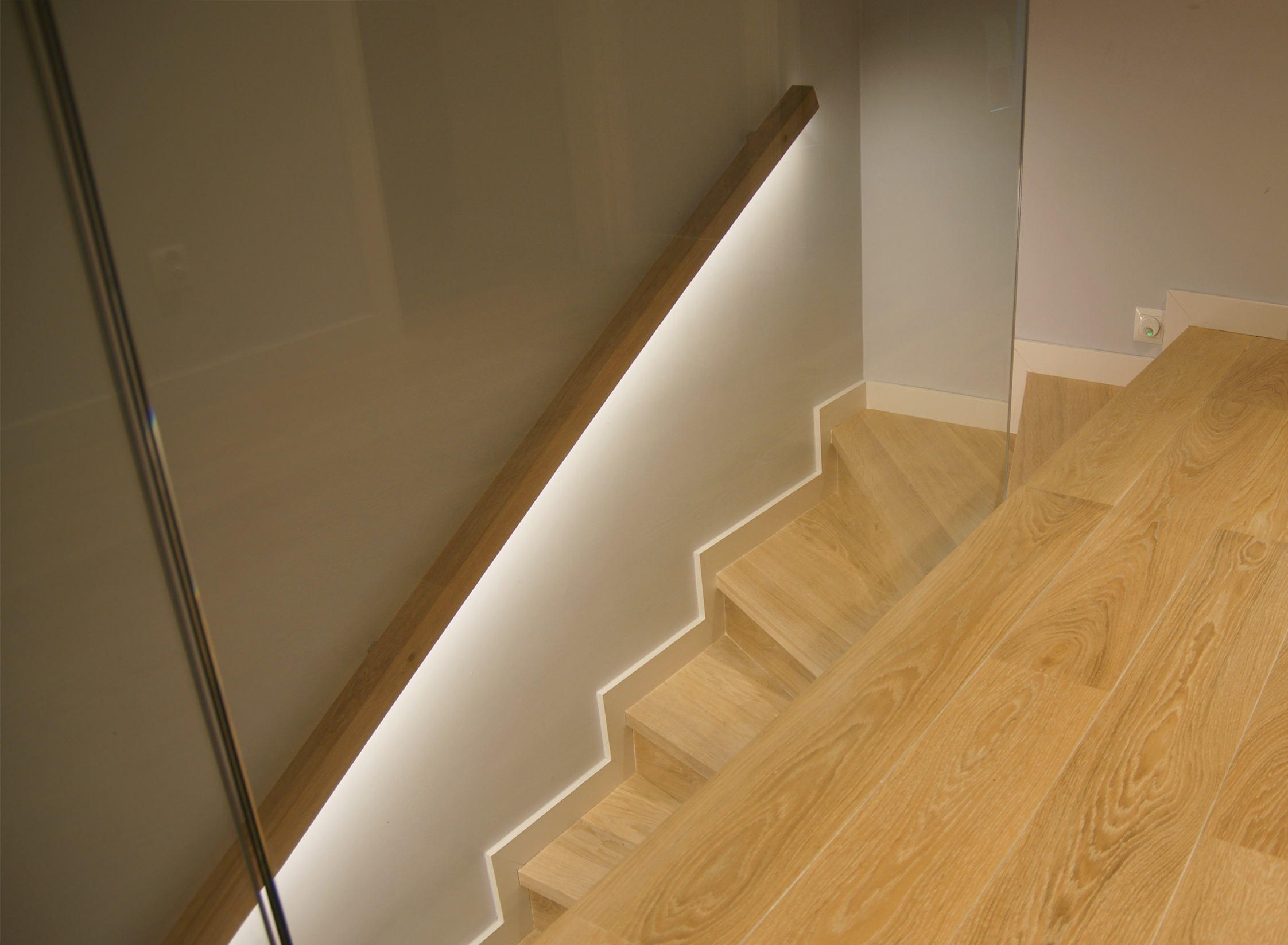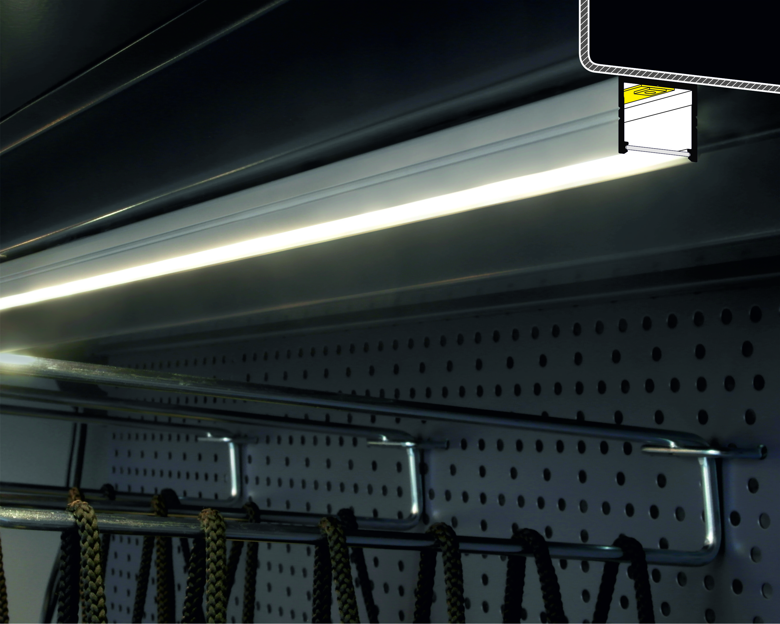 Skinne for påbygning på lofter, på reoler, i møbler m.m.