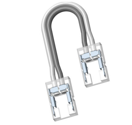 Fleksibel samler for DIOFLEX COB IP20 LED-bånd. Der er monteret 8cm mellem de 2 stik.
