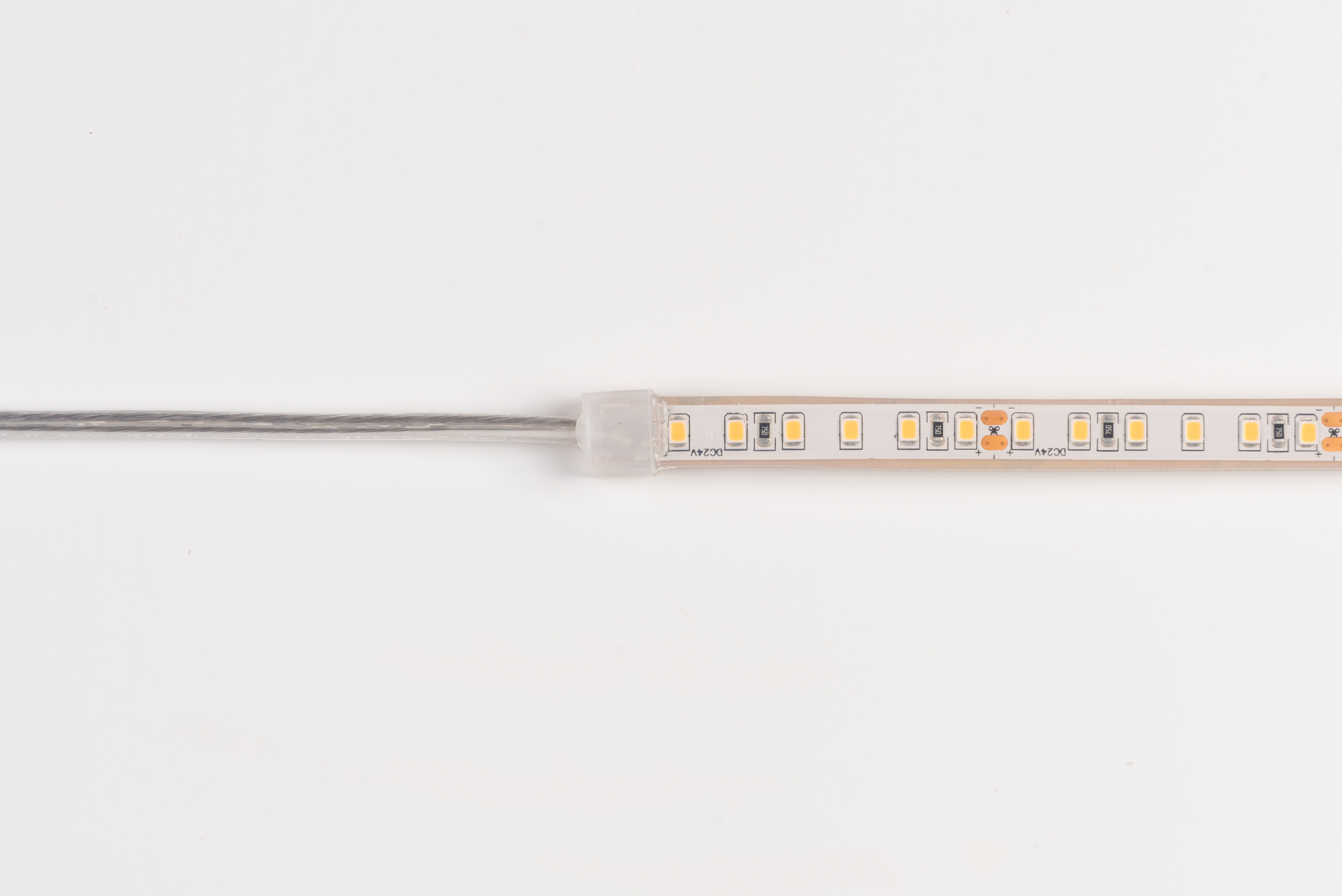 LED bånd til udendørs brug. Båndet ligger i en silikone "strømpe";24V DC;IP68;CE;Bredde 10mm;Højde: 4,5mm;Længde 5m rulle, med 2m ledning i hver ende ;LED båndet kan klippes for hver 10cm;Max. systemlængde 5m ;MM godkendt (kan monteres på alle typer materialer);Til inden- og udendørs brug (kun til udendørs brug med korrekt montage);5 års garanti;LED;1630 lumen pr. meter;19,2W pr. meter;120 LED pr. meter;4.000 kelvin;120° spredningsvinkel;Ra>90;50.000 levetimer;L80B10;SDCM<3;Dæmpbar med Dioflex controller/dæmper;