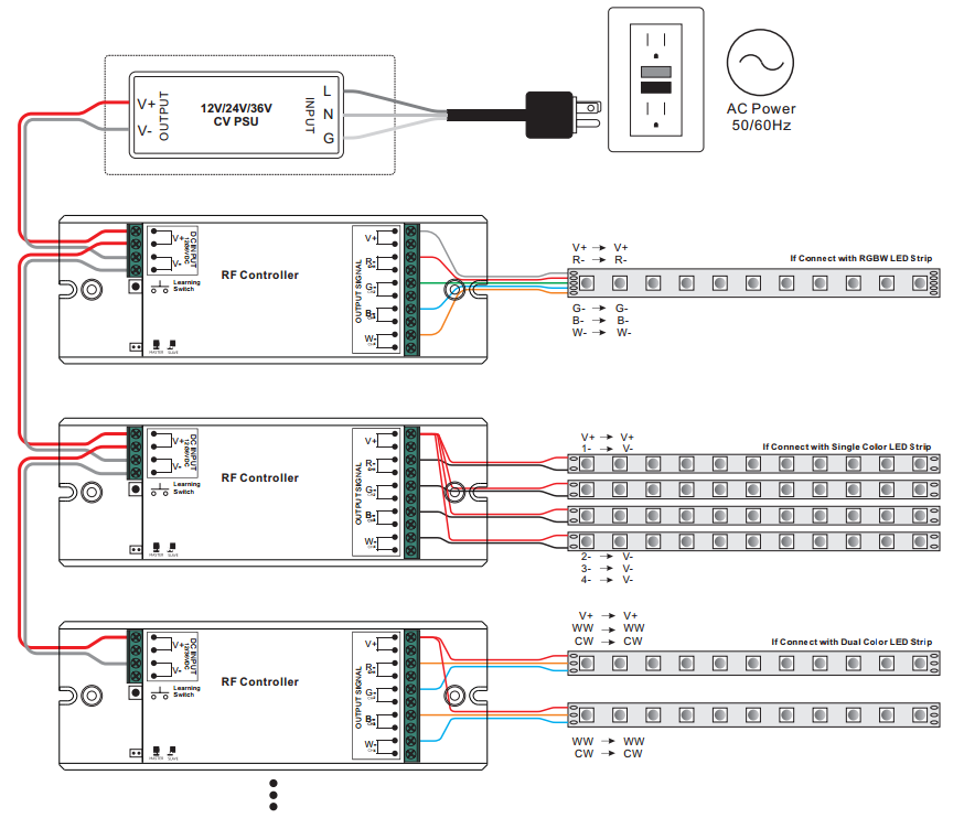 RF control af RGB(W), Tunable White og single color LED