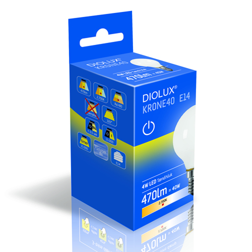 DIOLUX KRONE40 4W 827 E14 470lm tænd/sluk