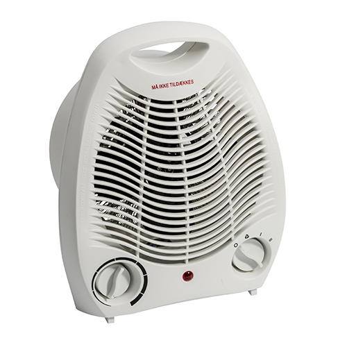 Afbryderen har 3 indstillinger, ventilator, lav (1000W) og høj effekt (2000W)