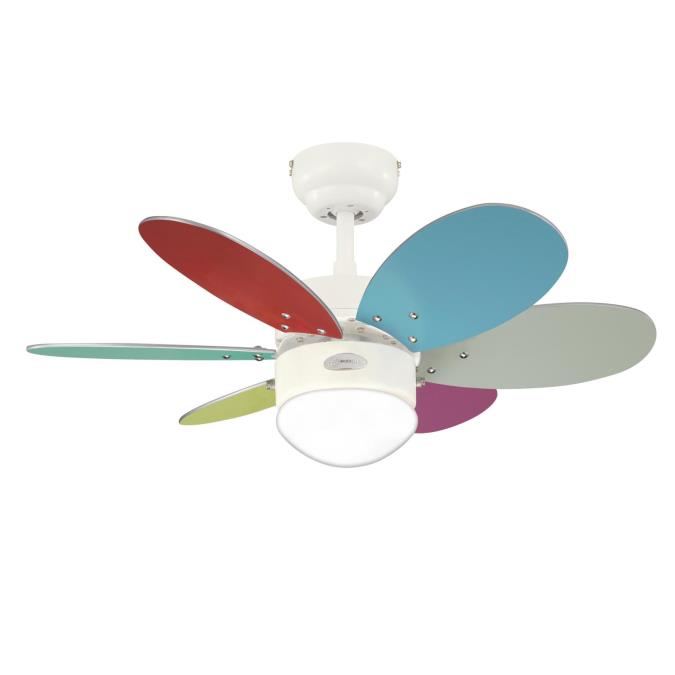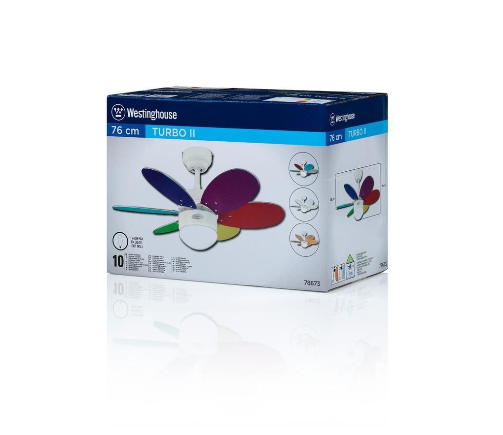 Loftvent.TURBO II hvid/farv Ø76cm 3speed+E14 lys
