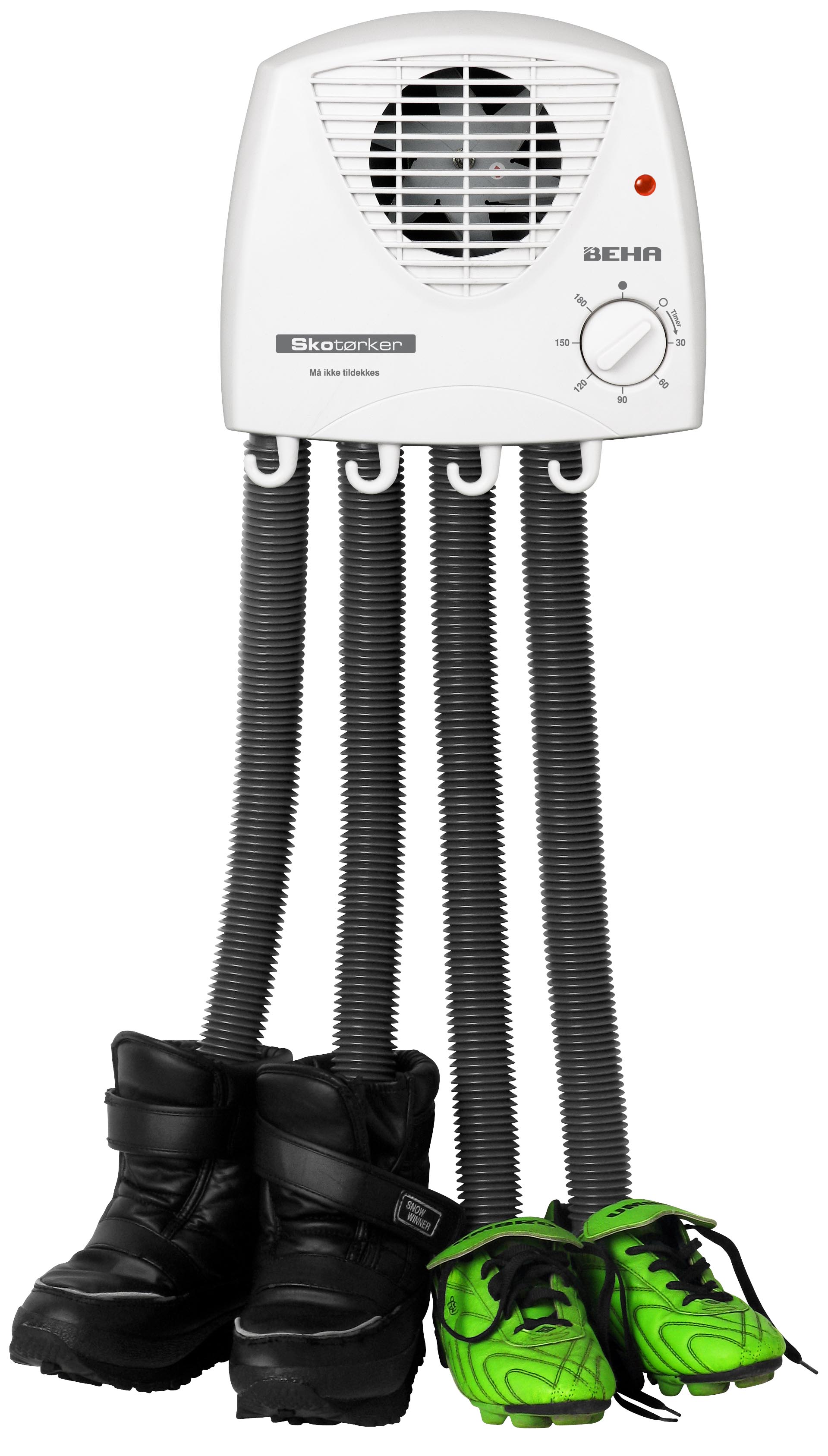 Beha skotørrer SKO 300 T er perfekt til dig, der har været ude i regn- eller snevejr. Skotørreren sættes nemt på væggen i gangen eller i vaskerummet, og den vil altid være klar til at tage sig af familiens våde fodtøj.