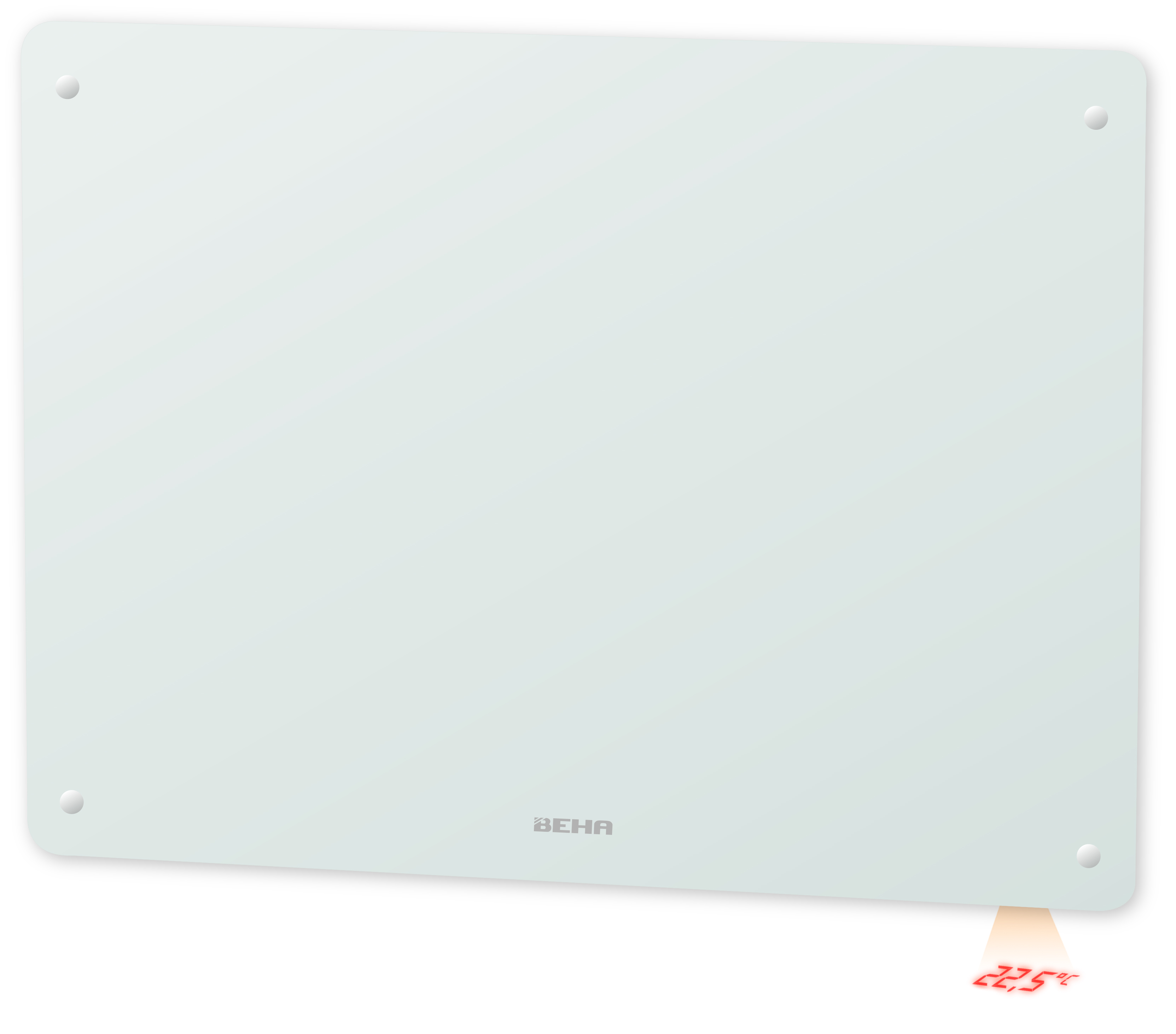 Ovnene kommer med indbygget Wi-Fi og avanceret teknologi, som giver dig mulighed for at styre og fjernstyre ovnene med Beha-appen til mobil. Den indstillede temperatur projiceres på gulvet. Ovnene har elektronisk termostat, og ved normal drift er overfladetemperaturen på glasfronten under 60º C. Glasovnene fås i flere bredder med forskellig watt.